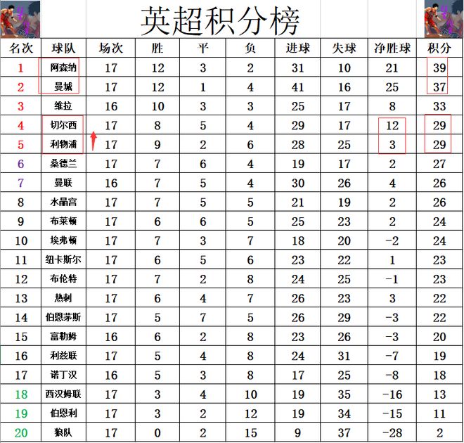 積分榜方面,阿森納和曼城今天都贏了球 ,這樣的話阿森納就還是2分優(yōu)勢力壓曼城繼續(xù)領(lǐng)跑。切爾西無力擊敗紐卡,利物浦贏球后追上了切爾西,暫時是凈勝球劣勢排在切爾西之后,再次沖回前5。